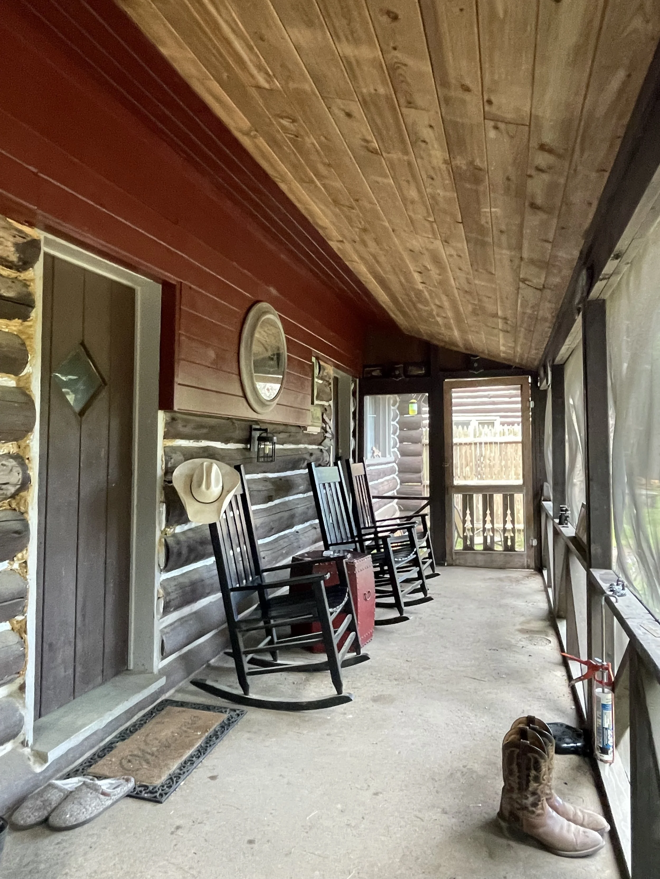 Kick those boots off and relax on our enclosed porch. (Available with select cabins).